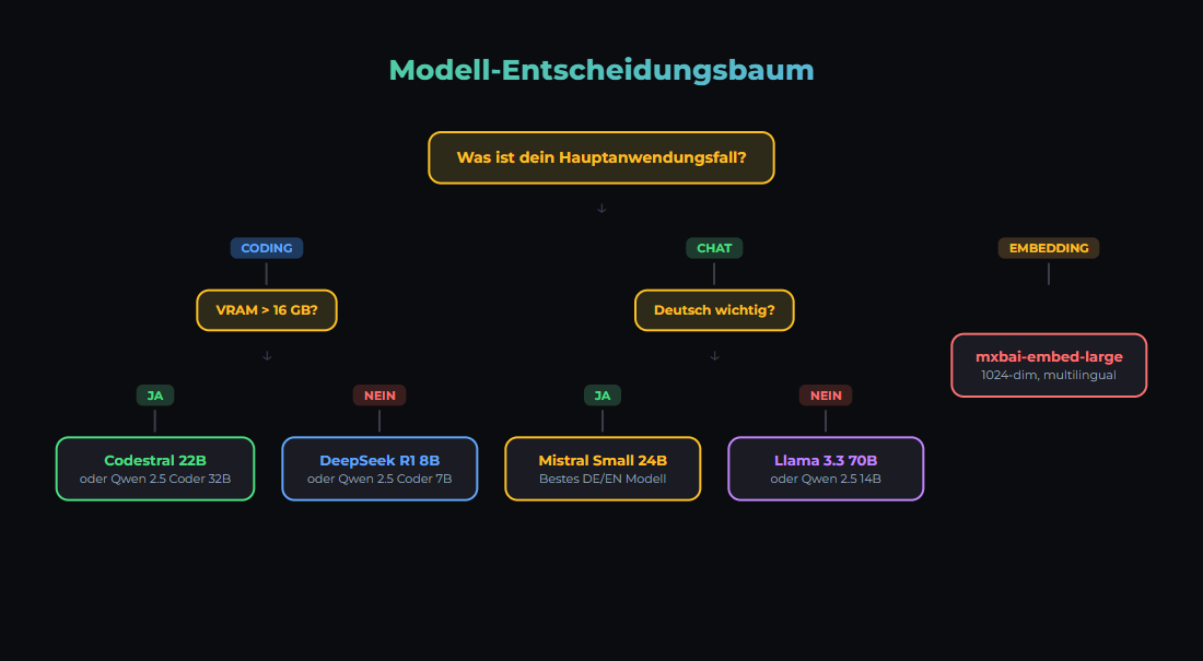 ollama pull qwen3:14b # 4-bit default, ~10GBDecision Guide