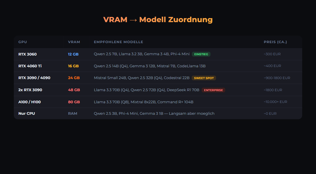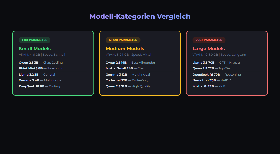 | Mistral Small 3.1 | 24B | ~16 GB | ~30 | German (outperforms GPT-4o Mini) |